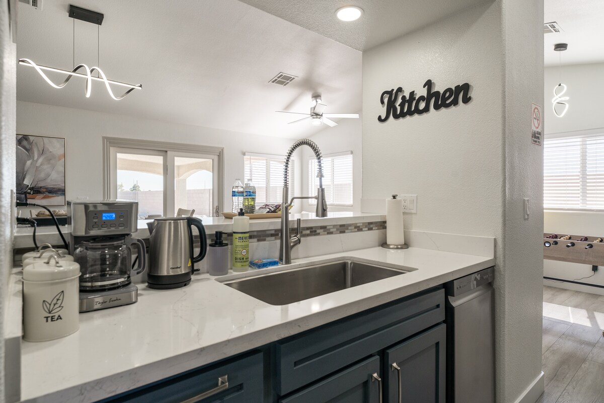 KITCHEN: Dishwasher, coffee maker, blender, toaster, Crockpot, ice maker/water filter, cooking basics & spices, coffee/tea, dishware/flatware, garbage disposal, high chair & children’s dishware available.